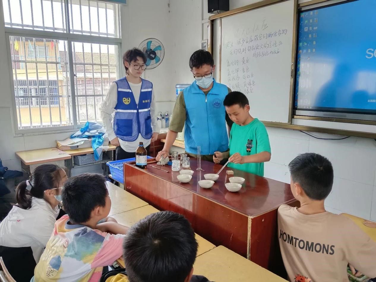 2023512日,bevictor韦德国际​bevictor韦德国际青年志愿者们,带着化学实验材料,来到湖北省孝感市桂桥小学,为小员工上了一堂生动的化学实验课。大朋友们快速和小朋友熟悉后,先后展示了焰色反应,对反应原理进行了讲解;展示了不同金属氯化物和乙醇合并燃烧能产生彩色焰火;带小朋友们亲手做酸碱滴定实验,观察液体颜色变化。小朋友们认真地观察,欢呼雀跃,目光炯炯有神,一举一动都流露出他们对奇妙化学世界的探索欲。