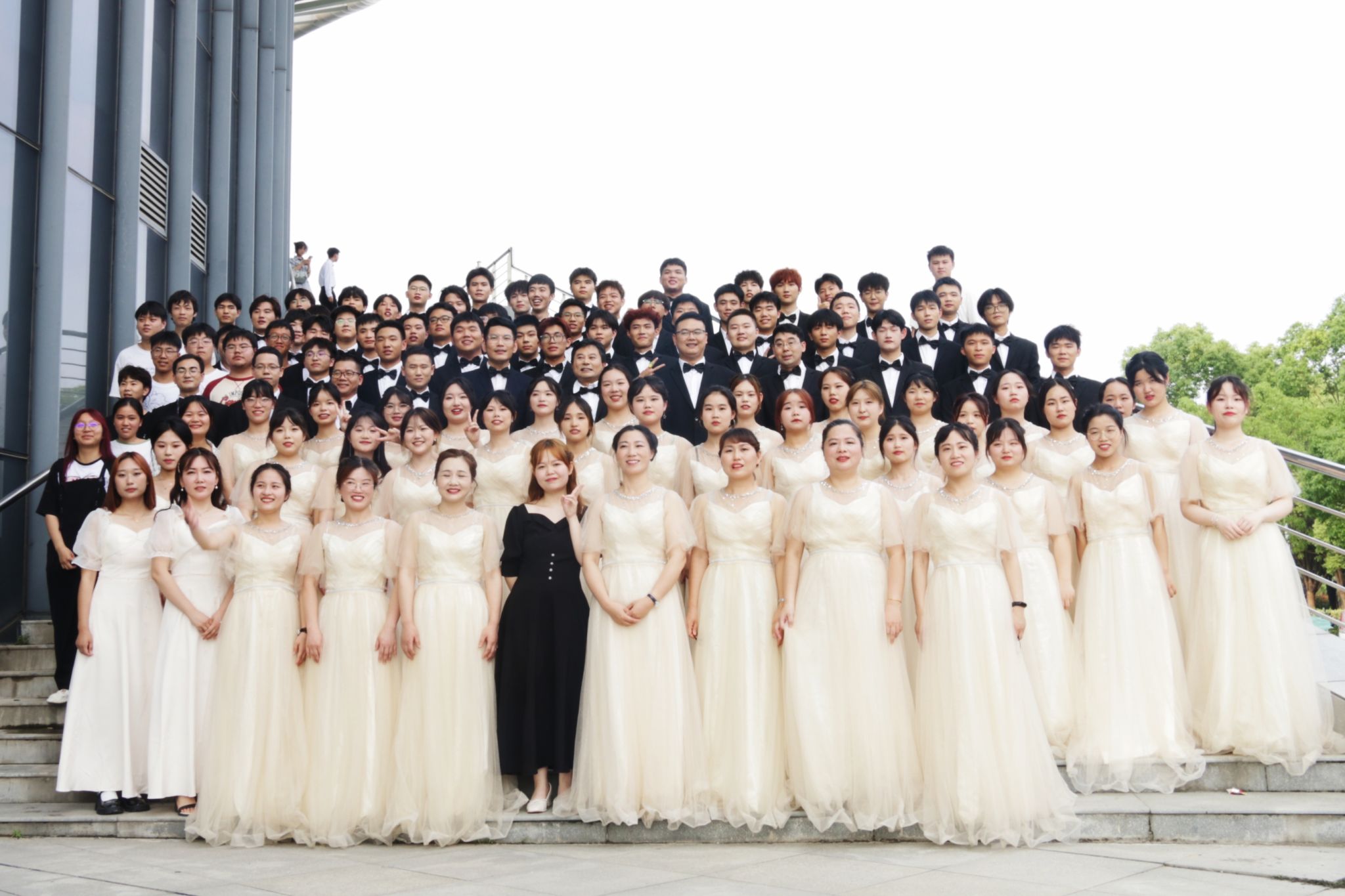 公司党委高度重视此次活动,动员全院师生组建了一支由院领导、班主任、教工党支部书记、学工组老师及员工组成的九十人师生合唱团。公司员工课程节奏紧凑,实验课较多,很多同学做完实验就匆匆赶去排练。排练历时两个月,院领导和排练老师们反复沟通,尽量为同学们合理安排排练时间。音乐公司老师和志愿者们,从发声技巧到情感表达,为师生们悉心指导。每次排练同学们都全身心投入。